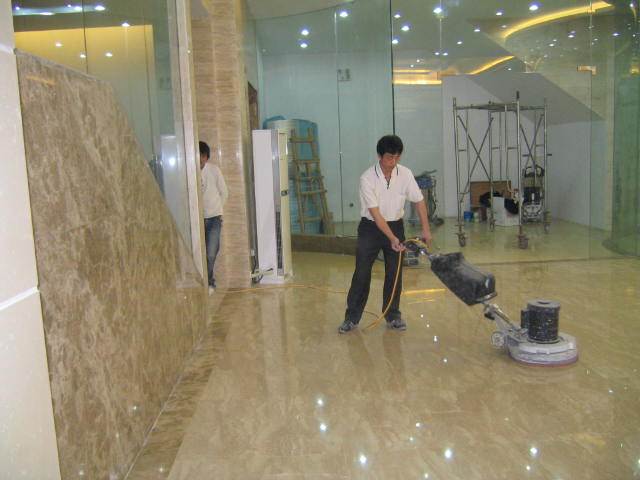 3、如果石材地板上的光澤變暗淡,修復的方法只有一個,那就是重新研磨。